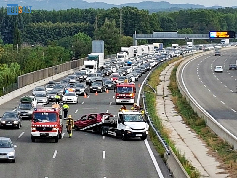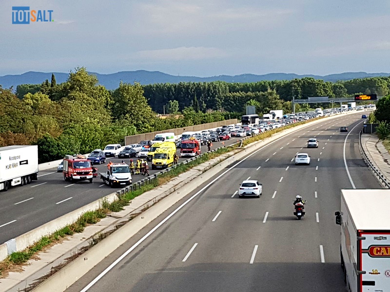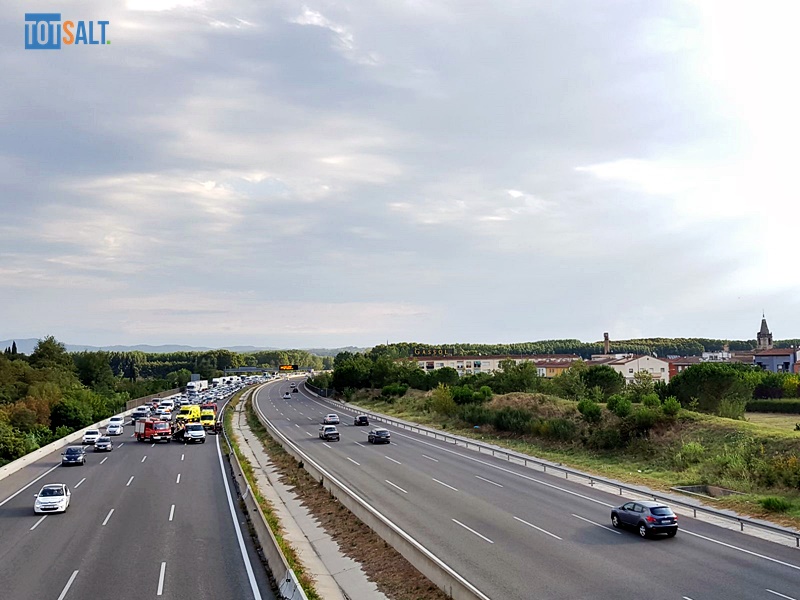 Aquest matí un accident a l’AP-7 ha causat retencions molt a prop de la Sortida 7 de Salt.