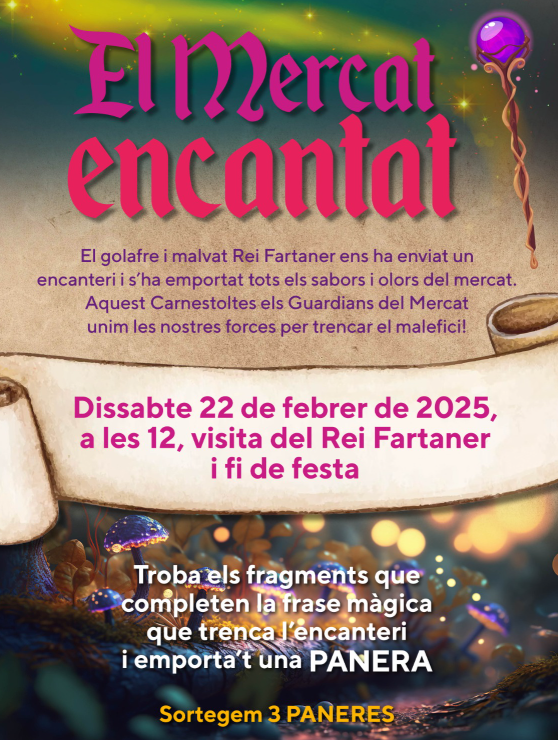 Els dies 21 i 22 de febrer, els paradistes es disfressaran segons els seus personatges màgics, convertint el mercat en un autèntic escenari de Carnestoltes. A més, el dissabte 22 de febrer a les 12 h, tindrà lloc la gran fi de festa amb la visita del Rei Fartaner, una figura emblemàtica que posarà el punt final a la celebració.