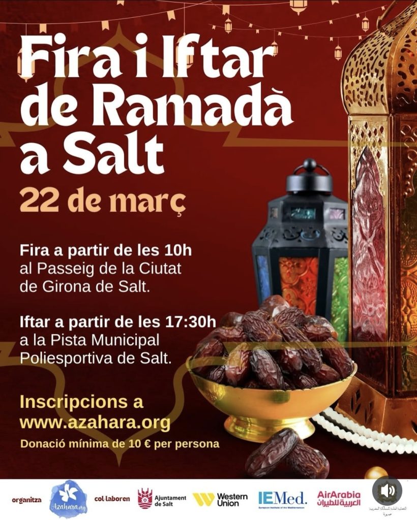 El 22 de març, Salt acull la Fira i Iftar de Ramadà, una jornada plena de cultura i tradició. La fira començarà a les 10h al Passeig de la Ciutat de Girona de Salt, i l’iftar es farà a les 17:30h a la Pista Municipal Poliesportiva. Inscripcions a www.azahara.org amb donació mínima de 10 €.