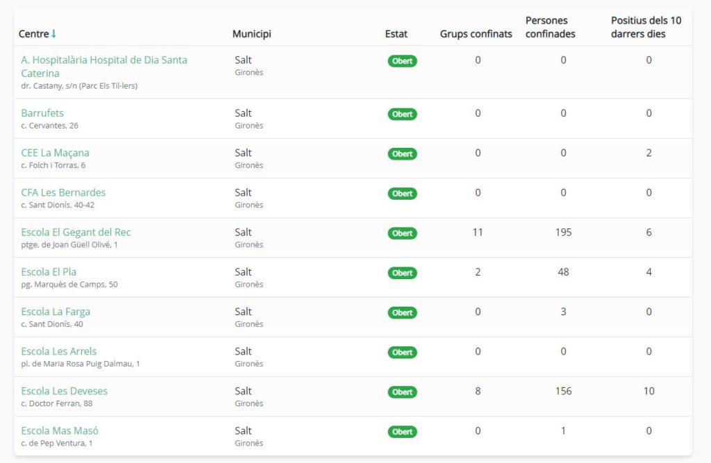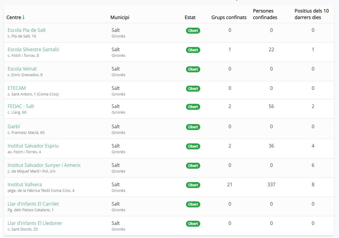 Segons les Dades del Gencat a Salt tenim 1.661 casos positius i 7.506 casos sospitosos per contacte estret amb positius.