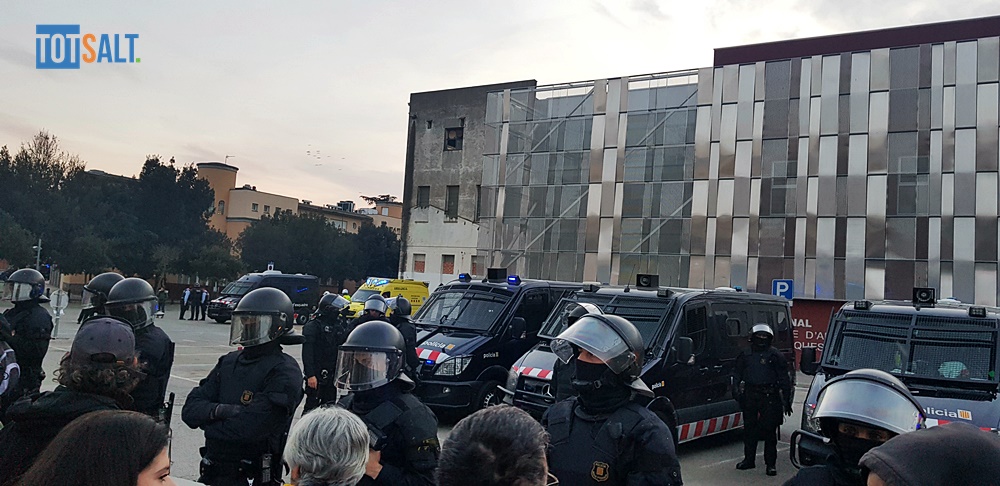 Sobre les 17h ja estava blindat l’accés als carrers paral·lels al Canal de Salt. Més de 200 persones s’han manifestat aquest dissabte a la tarda davant del Canal de Salt per protestar contra l’acte de Vox Gerona. Una desena de furgons i més d’una quarantena d’agents dels mossos d’esquadra han blindat sobre les 17h tots … Continua llegint La Segona Cara de l’acte de VOX Gerona a Salt. La Manifestació