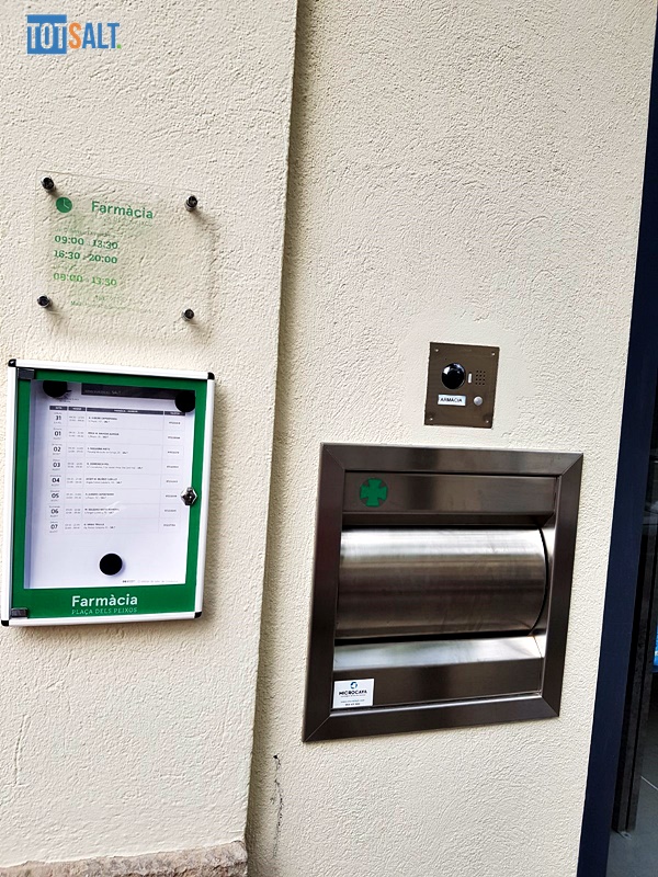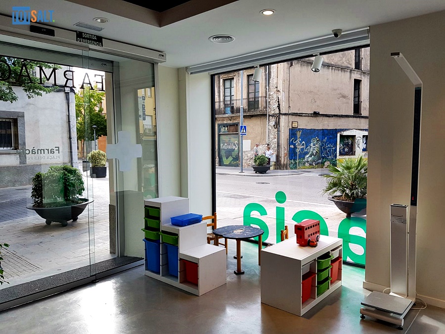 Al final del carrer major de salt, davant de la Plaça Jacint Verdaguer (Plaça dels Peixos) s’ofereix des de finals de juliol els serveis d’una nova farmàcia amb la porta principal en el carrer Esteve Vila.