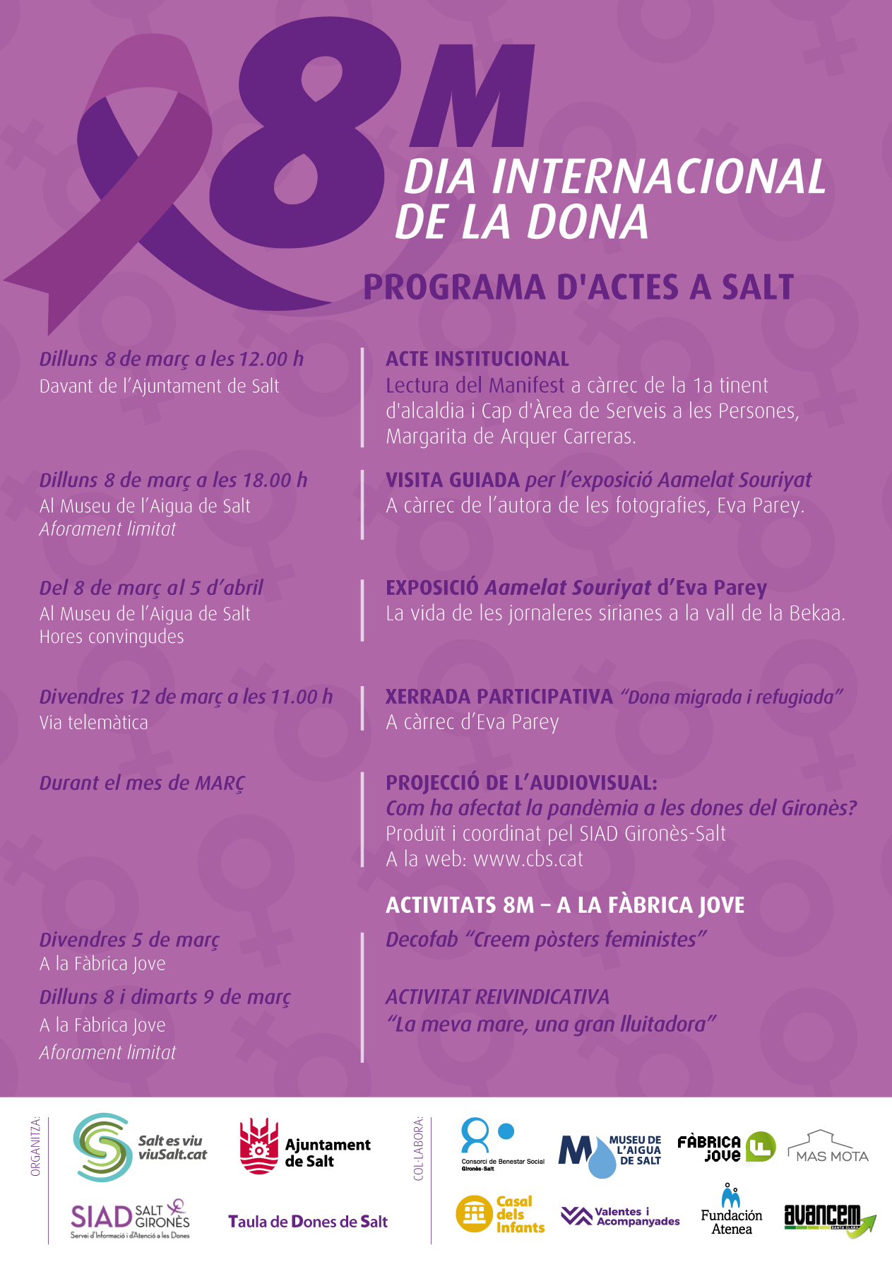 Programa d’actes que se celebraran a Salt al voltant del 8 de Març, Dia Internacional de la Dona. Reobren els Odeón Multicines a l’Espai Gironès3a Gala de Circ de GironaGimnàstica de mantenimentActes del Dia Internacional de les Dones a SaltFeliç Dia de la Dona 2025! Frases inspiradores i reivindicatives per celebrar el 8MActes del Dia … Continua llegint Programa d’actes 8M a Salt